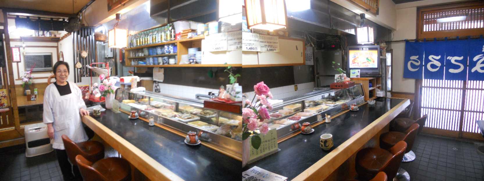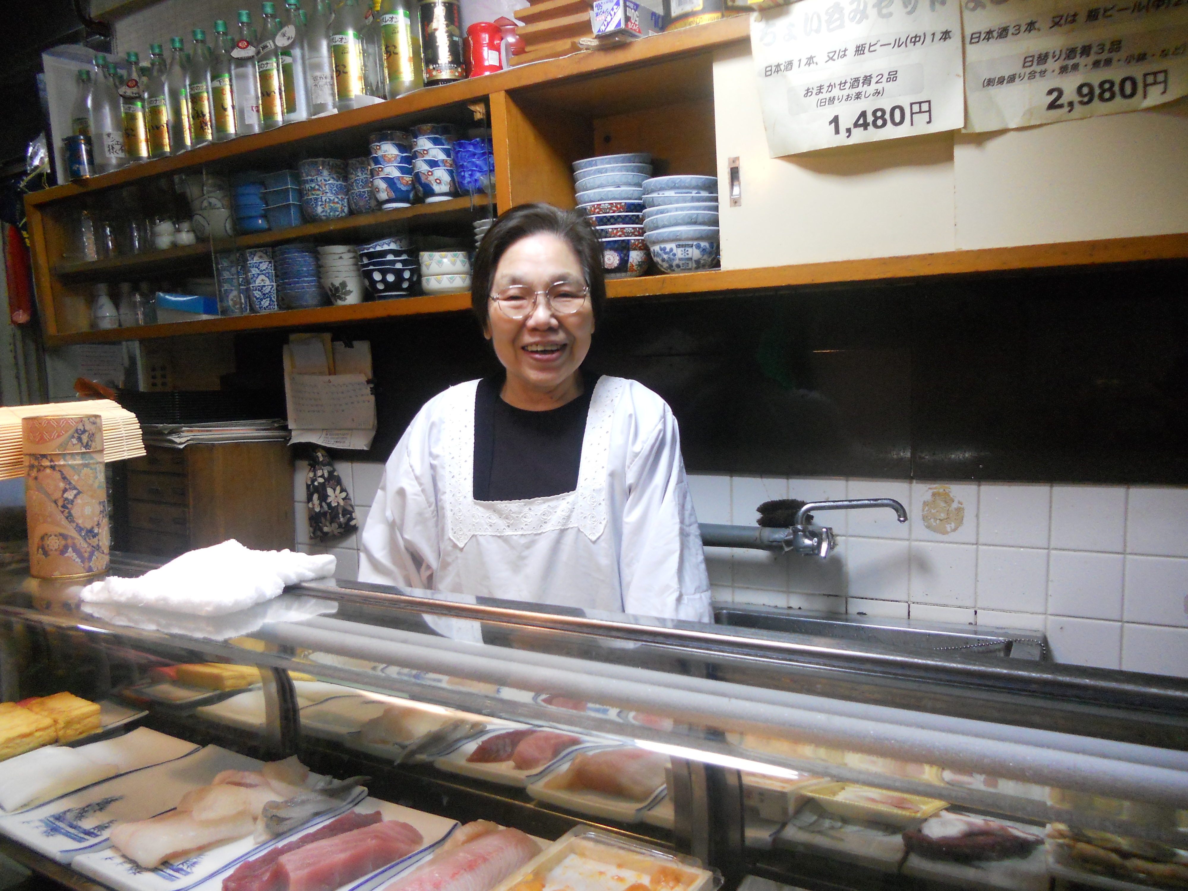 お客さんと支えた半世紀 仙台のサンモール一番町から西に抜ける道を少し入ったところに「食事処・よごろう」はある。 この店を女手一つで切り盛りしているのが女将の浅野知子さん(77歳)だ。 今から60年前の昭和27年に「与五郎寿司・一番町支店」として開業したこの店に女将さんが本店から回されたのは昭和33年の事。稲荷小路の「与五郎寿司・本店」に15歳から勤め始めた女将さんが6年経った時の事だった。以来50有余年、幾多の紆余曲折を経ながら女将さんはこの店と共に生きてきた。昭和40年には店の名前を「食事処・よごろう」と変え、本店から独立した。 店は木造の二階建て。古い絣の暖簾をくぐると1階には五人掛けのカウンターと、2人が向かい合って腰かけられるテーブル席が2つ、そして奥には4人が座れる畳敷きの小上がりがある。2階は小宴会用の和室が2部屋あり、仕切りの襖を外せば20人ぐらいまでが入れる。 客の方は昔ながらの常連客が多いが、ランチタイムの豪快な〝まぐろ丼〟(八百円)に惹かれてやって来るフリー客も結構居る。客層は現役の会社員、公務員、趣味の会の女性、退職後の人生を楽しむ男性、それに女将さんの知り合い等、実に多彩である。夕刻ともなれば、一人でふらっと入って来る人、仲間と連れ立って来る人、忙しそうに2階の部屋に上がって行く人、それぞれの人がそれぞれの思いを持って店にやって来る。 肝心の料理はといえば、独立した後プロとして包丁を持つようになった女将さんが、寿司屋としてのこだわりをもって仕入れた新鮮な魚介類の料理が中心だ。市場で自ら目利きした魚を扱う手さばきは、まさに〝女板前〟の面目躍如というところ。刺身はもちろん、煮魚、焼き魚、酢の物、寿司と、何でもござれの料理の数々は、塩加減がほど良く効いた茄子や胡瓜の漬物と相まって、客の舌と心を捉えて離さない。 店の持つ雰囲気もまた良い。女将さんの人柄がそのまんま出たような飾り気のない、それでいて気配りを感じさせる店内の雰囲気に惹かれて来る客も多い。ある客が言う。「毎年ここのデパートで開かれる観光物産展に新潟から出店してる。近くのホテルを常宿にしているんだが、食事をするのはいつもこの店と決めてるんだ。」またある客は、「開店以来だからねえ、え、五十年?俺たちも歳をとる訳だ。持ちつ持たれつ、お互いよくここまで来たもんだよ。」隣りで女将さんが静かに笑っている。「お客様に育てていただいたんですよ。良いお客様に恵まれて幸せでした。だけど、わたしも歳だからねえ、いつまでやれるか..こんなご時世だから他人を使ってまでは出来ませんよ。娘と一緒にやってた頃が華だったねえ。」 東日本大震災(平成23年)後、それまで使っていたアルバイトも断り、全くの女手一つで店を切り盛りしてもう三年になる。自らを叱咤激励しながら、女将さんは今日も店に出る。そして常連客たちも、それぞれの思いを持って今日も「食事処・よごろう」の暖簾をくぐる。 ・晩酌コース(2,980円) ~銚子3本、又は、ビール2本(中ビン)、肴4品(刺身、焼き物、小鉢、漬物) ・ちょい飲みコース(1,480円) ~銚子1本、又は、ビール1本(中ビン)、肴2品(刺身、又は、焼魚、漬物) |